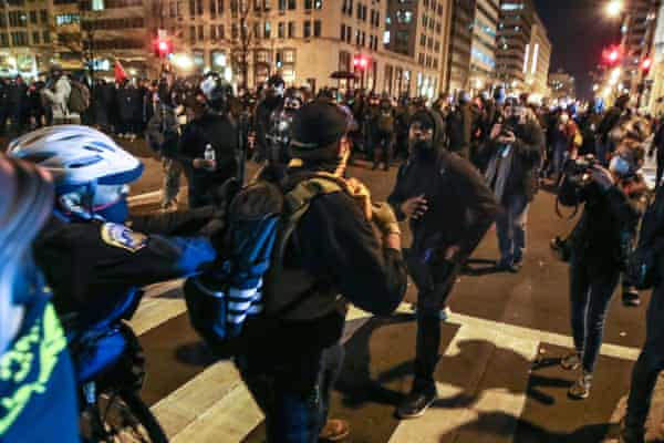 Dikabarkan empat orang dilaporkan ditikam dan 23 orang pendukung Trump lainnya ditangkap, setelah mereka pawai untuk mengecam kemenangan pemilihan Joe Biden. Insiden kekerasan pecah di jalan-jalan Washington DC setelah kelompok-kelompok sayap kanan, pendukung Trump bentrok dengan pendukung Biden, yang pawai kemenangan.